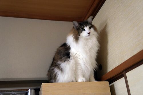 天袋の前にたたずむO次郎。ひさしぶりですね。 冬の猫さまは暖かい空気をたどって上へ上へと登ってゆきます。春から秋の終わりまでずっと床上生活でしたが、これからは高い処を転々とすることが多くなりますよ。 あーOちゃん。すいませんが今天袋の中はぎ…