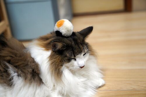 ひょっこりふわふわ。 はい。三毛もふだまができましたよ。 やっぱり植毛はけっこう大変でした。ちまちまと毛を植えるのもそうですが、植えた後にそれを切りそろえるのが超んどくさくって。ハサミを親指と小指にはめて、親指だけ動かして削ぐような感じ。散…