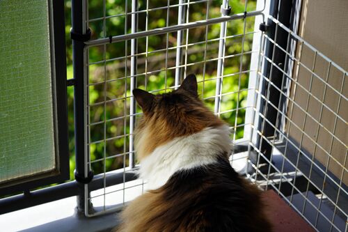 朝のOちゃん。おんもに出て向かいの森を眺めるのが日課。朝はまだ寒く、風がきついので森の木々もざわざわしています。 小鳥がけっこう飛び交っていますよ。Oちゃんのうしろあたま、耳がぴくぴく全方向。 今日はちょっと曇り空な感じですね。 なんかベラン…