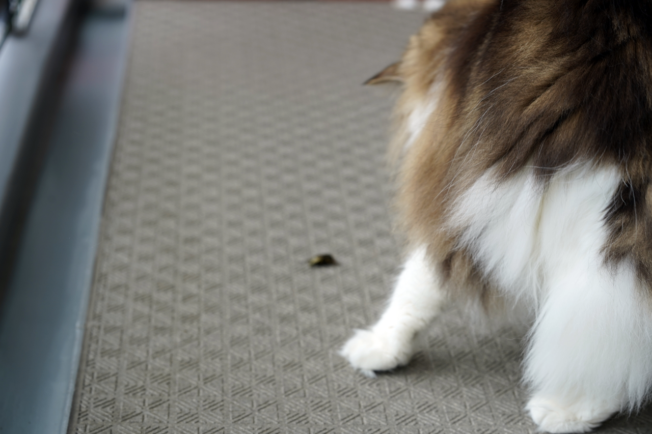 溝でガジガジとのたうつカナブンさんは怖いけど、溝からはい出てきたらO次郎のテリトリーですから排除せねばなりません。おっかなびっくりのO次郎に果たして安静な日々は戻るのか!!
