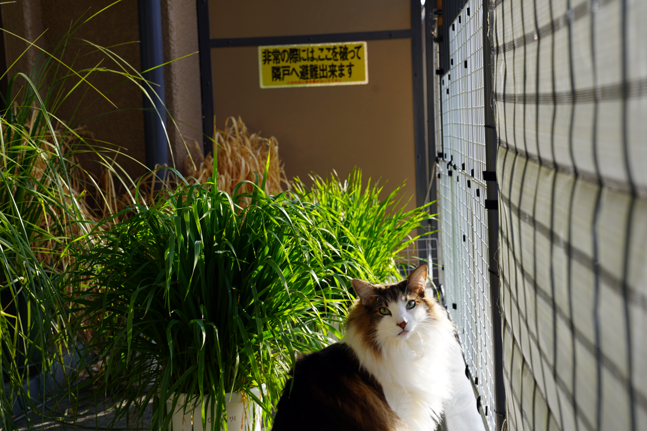 あまりの寒さに。朝にベランダに出ることも少なくなっているO次郎ですが。最近は夕方にベランダに出てはパンパスグラスをがじがじと噛んでいるようですね。