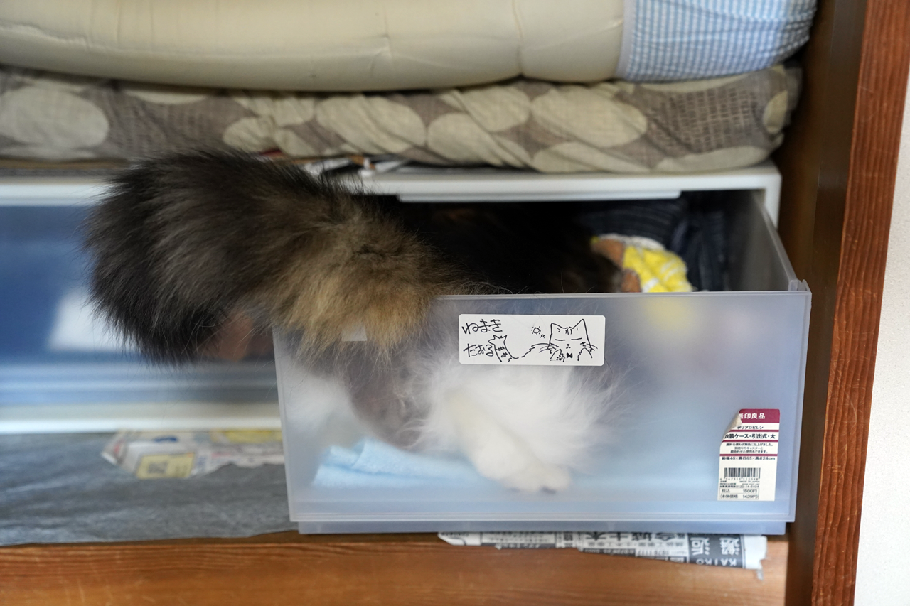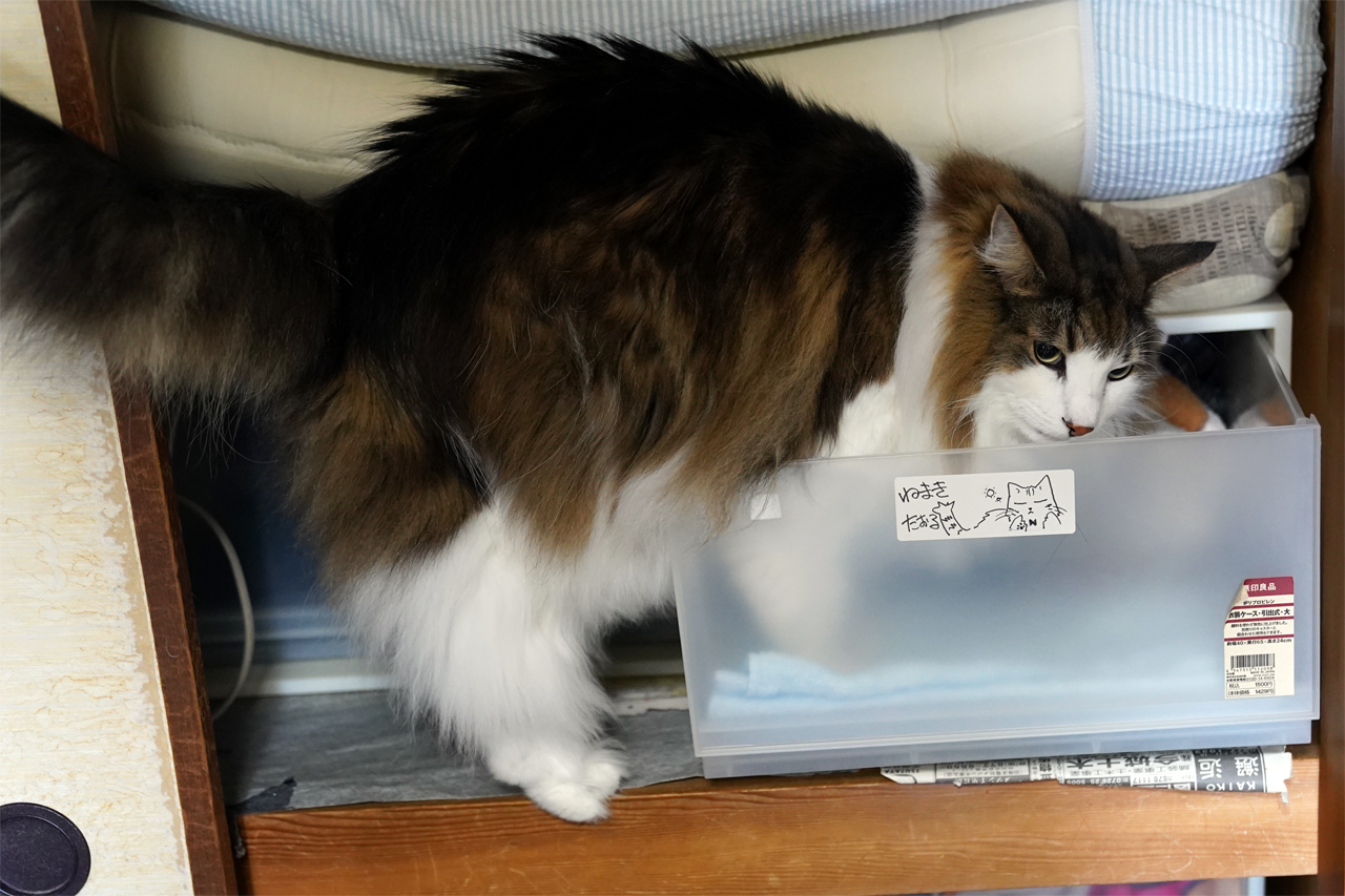 ちょっとでも衣装ケースなぞを開けていると、すかさずチェックが入ります。